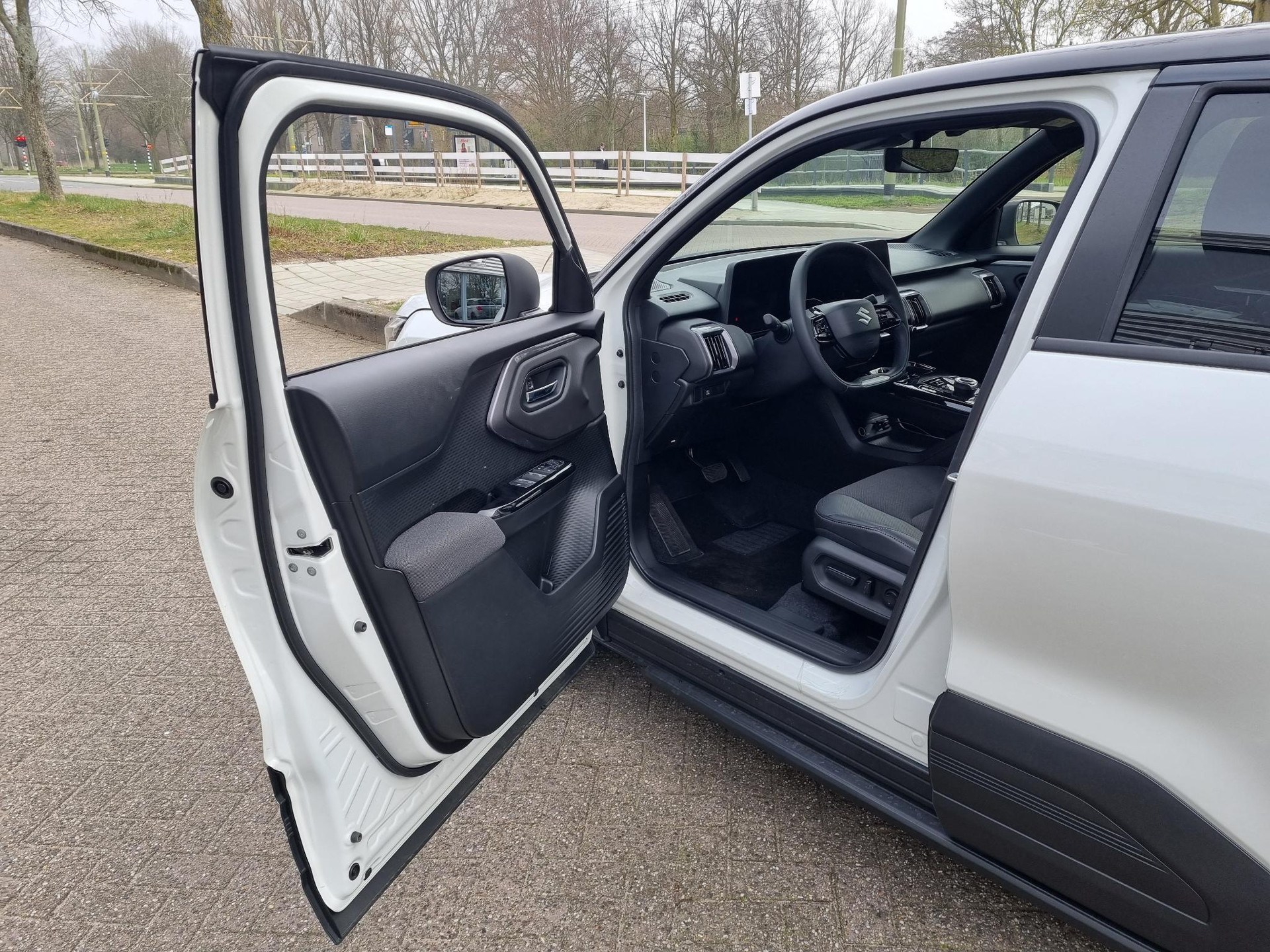Hij is doordacht innovatief en duurzaam als geen ander: de elektrische Suzuki e VITARA biedt met zijn elektrische aandrijving een ongekende rijervaring. Dankzij de geavanceerde batterijtechnologie hebt u met deze auto een rijbereik dat ruim voldoende is voor de meeste dagelijkse ritten. En u zult zien, de tijd die nodig is om de batterij op te laden, valt enorm mee. Last van de vorst? Door de stoelverwarming zit u in ieder geval vorstelijk! Onderweg heeft u extra veel te zien dankzij het glazen panoramadak. Stramme vingers krijgen 's winters een VIP-behandeling van het verwarmd stuurwiel. Tot de uitrusting van deze Suzuki behoren ook 19 inch lichtmetalen velgen, LED koplampen, warmtewerend glas, dakspoiler, in delen neerklapbare achterbank en LED-achterlichten.