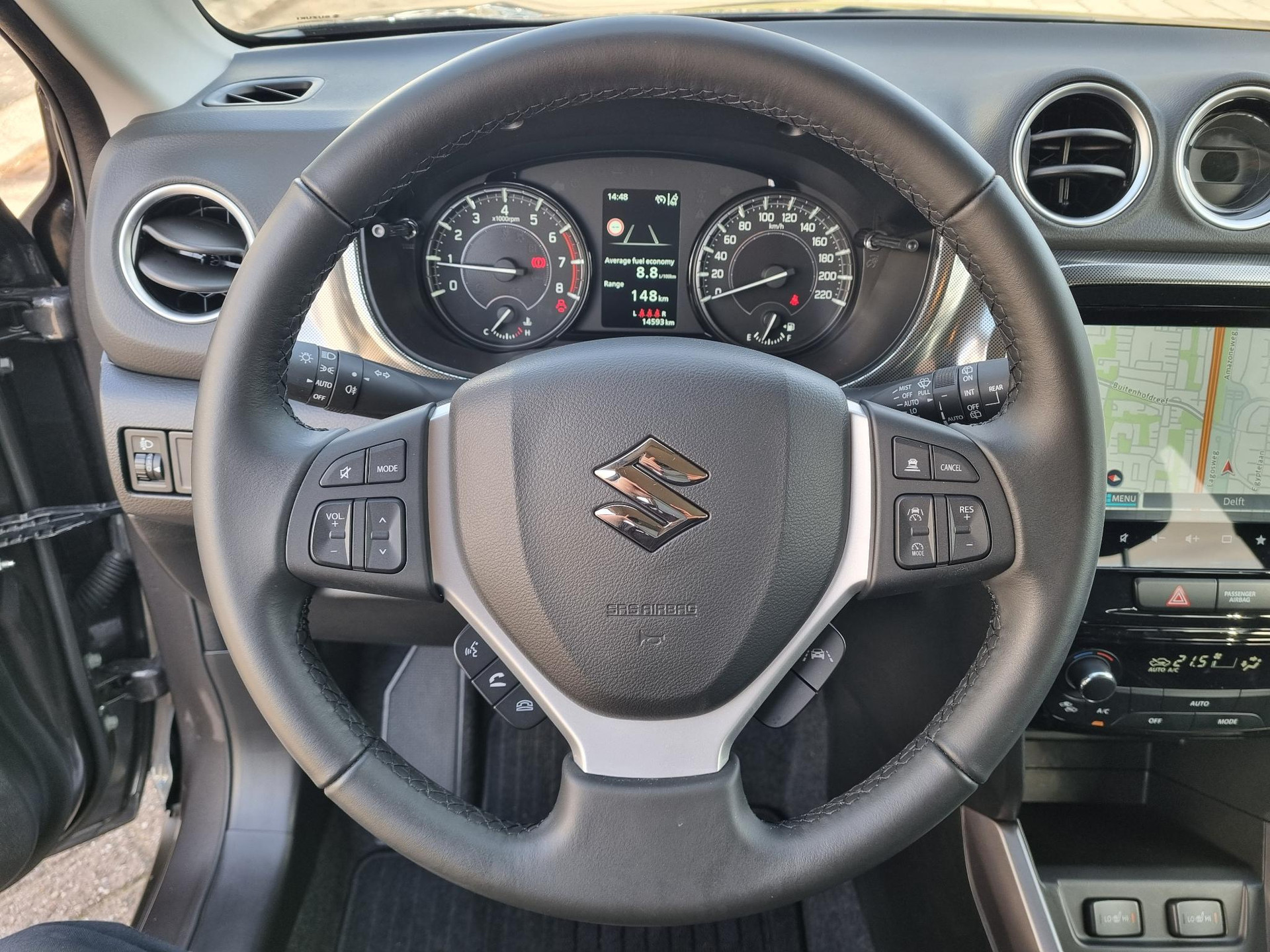 Overzichtelijk en veilig parkeren met de achteruitrijcamera. Overal en altijd. Adaptive cruise control is veilig en comfortabel. De snelheidsregelaar houdt automatisch afstand tot het voertuig dat voor u rijdt. Ingericht op Connected Services, voor een nog veiligere en comfortabelere rit. Ook praktisch: deze auto is voorzien van een eigen full map navigatiesysteem. Op een drukke weg heeft u soms ogen in uw achterhoofd nodig. De sensoren aan de achterzijde nemen die functie over en geven een achteropkomend verkeer waarschuwing als een achterligger te dicht op u zit. De Suzuki is standaard voorzien van: electronic climate control, DAB ontvangst, regensensor, keyless entry, bagage afdekhoes en boordcomputer.