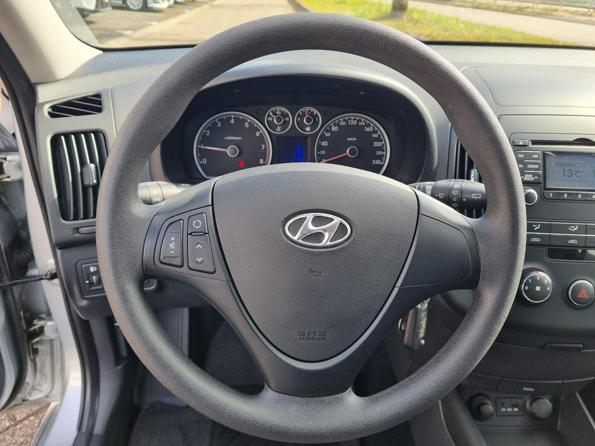 Het geluidssyteem in deze Hyundai i30 is regelbaar met behulp van de audiobediening op het stuur. Met de aanwezige airconditioning bepaalt u zelf het binnenklimaat. En deze auto heeft ook centrale deurvergrendeling met afstandsbediening, boordcomputer en verstelbaar stuur als standaard uitrusting.